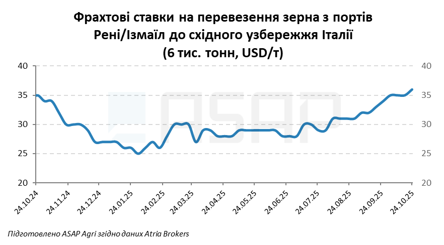 У сегменті хендісайзів фрахт для відправки 30 000 т кукурудзи до Східного узбережжя Італії залишається на рівні 24–25 USD/т.