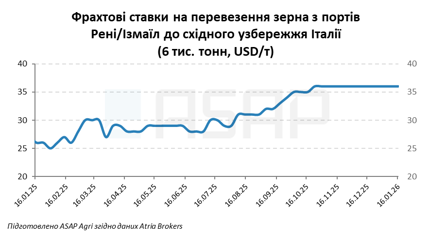 Фрахтовий відділ Atria Brokers оцінює фрахт для відвантаження 30 000 т кукурудзи з українських глибоководних портів до східного узбережжя Італії на рівні 24 USD/т, без змін за тиждень.