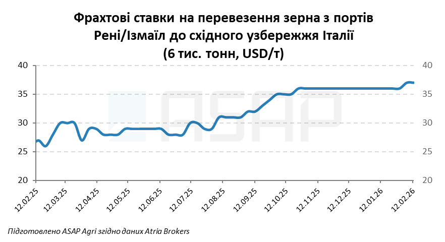 Фрахтовий відділ Atria Brokers оцінює фрахт для відвантаження 30 000 т кукурудзи з українських глибоководних портів до східного узбережжя Італії на рівні 25 USD/т, зниження на 1 USD/т за тиждень.